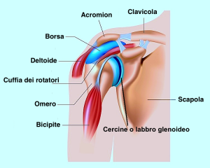 Per comprendere la natura della sindrome è opportuno ricordare alcuni concetti di anatomia del cingolo scapolo-omerale. La testa omerale si articola medialmente con il glenoide della scapola e superiormente con la volta dell’acromion ed il legamento coraco-acromiale. Tra la testa omerale e la volta acromiale si trova una borsa, la borsa sottodeltoidea, indispensabile perché favorisce lo scorrimento e la dispersione del calore prodotto dall’attrito del movimento del braccio. Questo spazio è altresì attraversato dai tendini dei tre muscoli extrarotatori della cuffia dei rotatori: il sovraspinato, il sottospinato e il piccolo rotondo che vanno ad inserirsi sulla testa omerale a livello del tubercolo maggiore. Se per una mancanza di stabilizzazione la testa omerale tende a risalire, andrà a provocare importanti sollecitazioni alle strutture sub-acromiali.